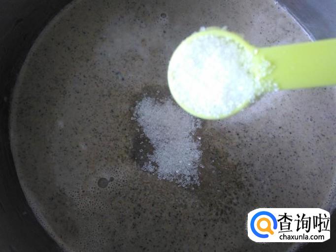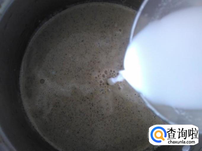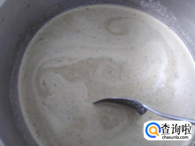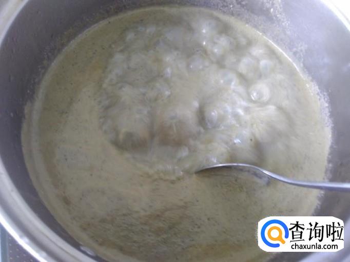 用小火煮,一边煮一边用勺子搅拌,不给粘锅底。