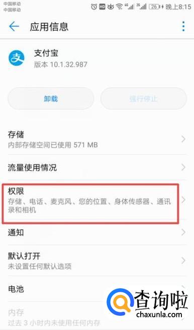 弹出的界面,我们点击权限;