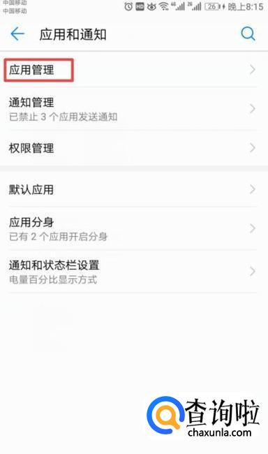 然后我们点击应用管理;