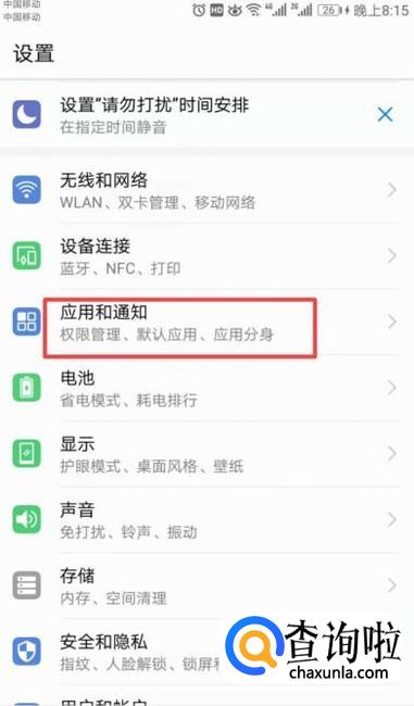 之后我们点击应用和通知;