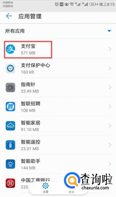 弹出的界面,我们找到支付宝,然后我们点击打开它;