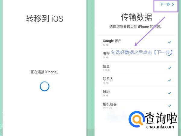 最后等待数据转移完成(这里是由安卓手机转到苹果手机的操作方法)。