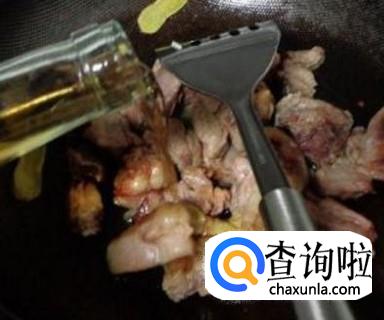 锅中加油,油8分热时加入我们洗净砍成小块的羊肉,爆炒,然后我们加入料酒,老抽,辣椒,适量,爆炒。