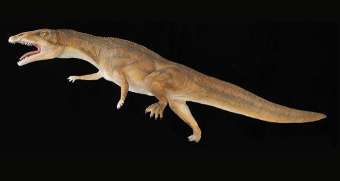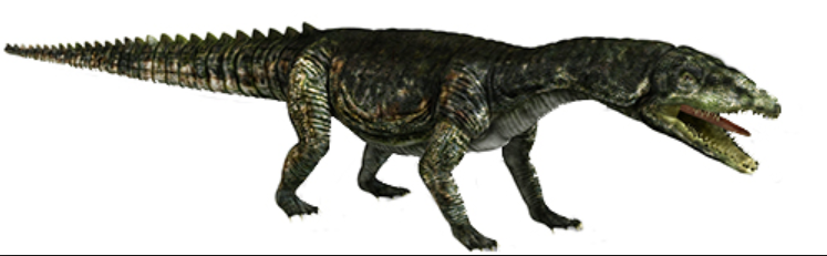 实际上,混形黔鳄并非我们今天所熟悉的鳄类。这种产自中国贵州盘县地区的大型肉食性爬行动物生活在2.4亿年前的三叠纪,属于一个叫作主龙类的类群,著名的恐龙(以及鸟类)、翼龙和现生鳄类都是这个类群的后代。