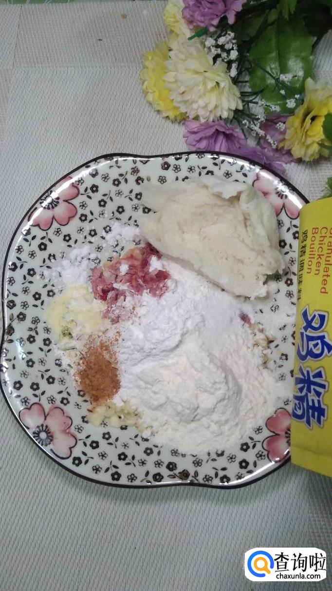 放入适量的面粉,淀粉,糯米粉,面粉,淀粉,糯米粉的比例最好是1:1:1。