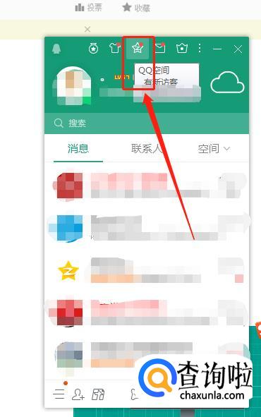 首先打开QQ,然后在界面的最上方找到QQ空间的图标,点击进入QQ空间。