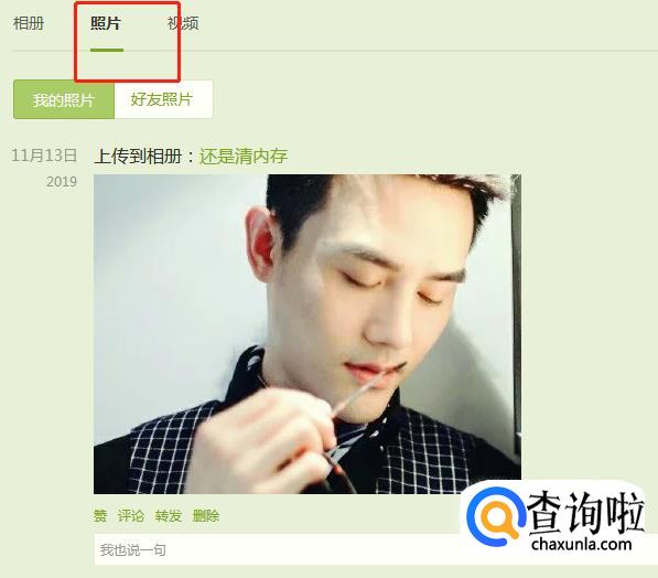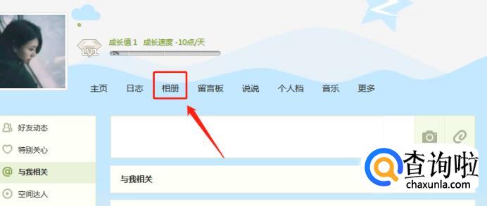 进入空间后,在页面上方的选项栏里找到“相册,”点击进入“相册”。