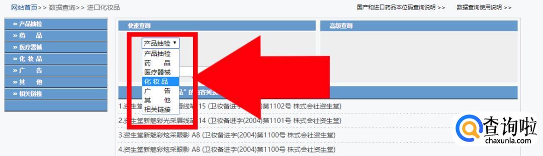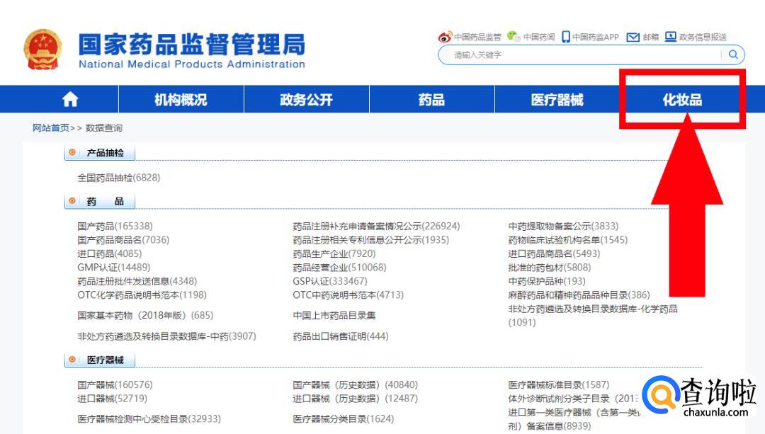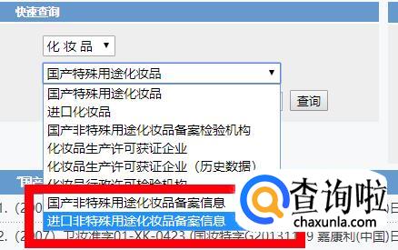 搜索化妆品品牌和类型找到相应的备案就可以了。
