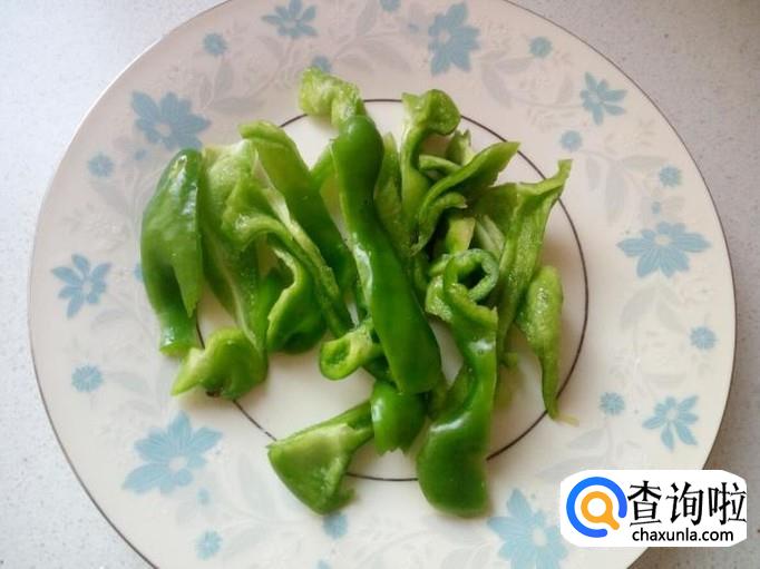 青椒用水洗净,切成条。切葱,姜,蒜,备用。