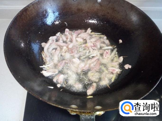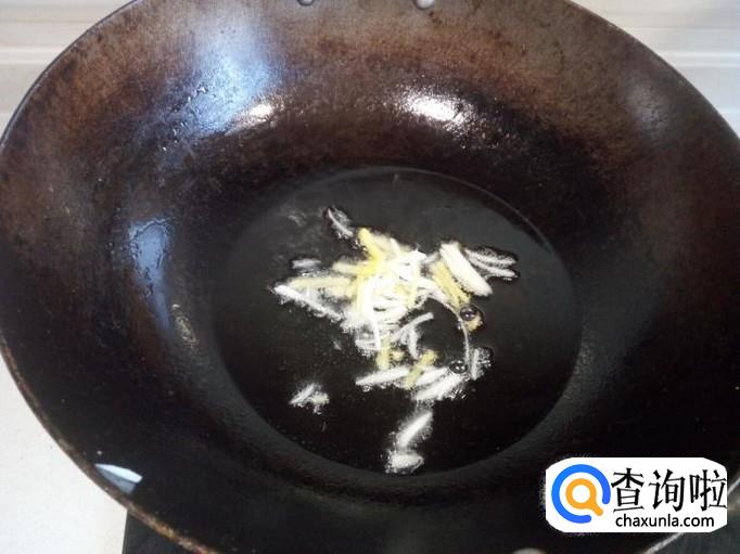 锅内放入多一些油,加热,油热后放入葱,姜爆锅,放入肉翻炒。