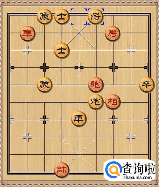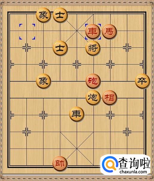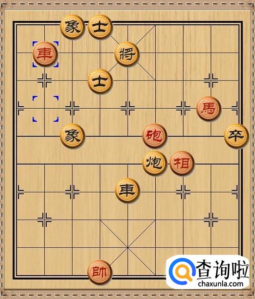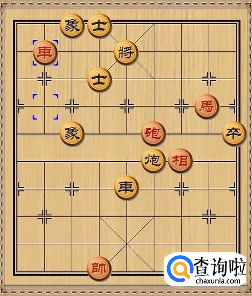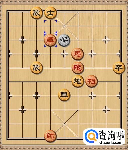 红方先行,红方车八进二,红方车下到黑方二线,红车将军。如图所示。