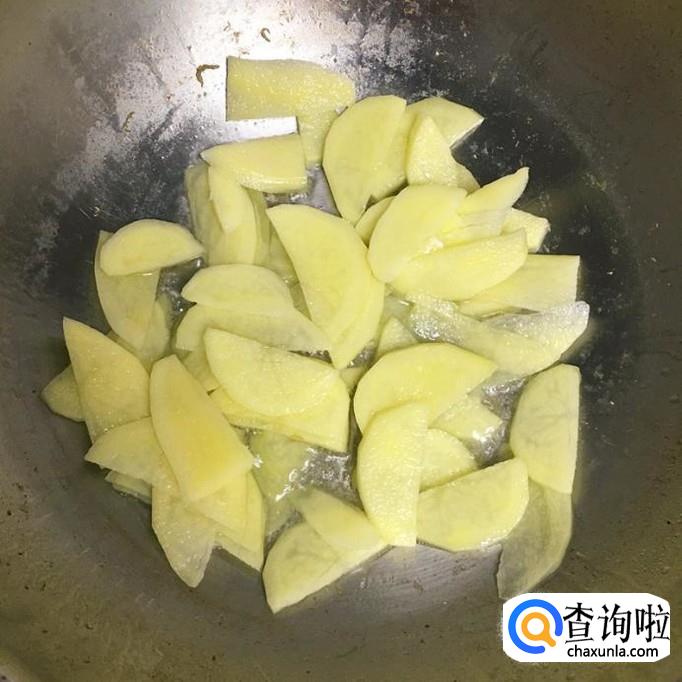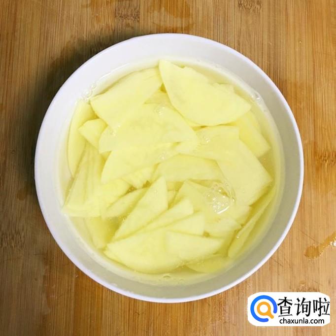 把土豆片放入碗中,加入适量水,浸泡出其中的淀粉,中间换几次水。