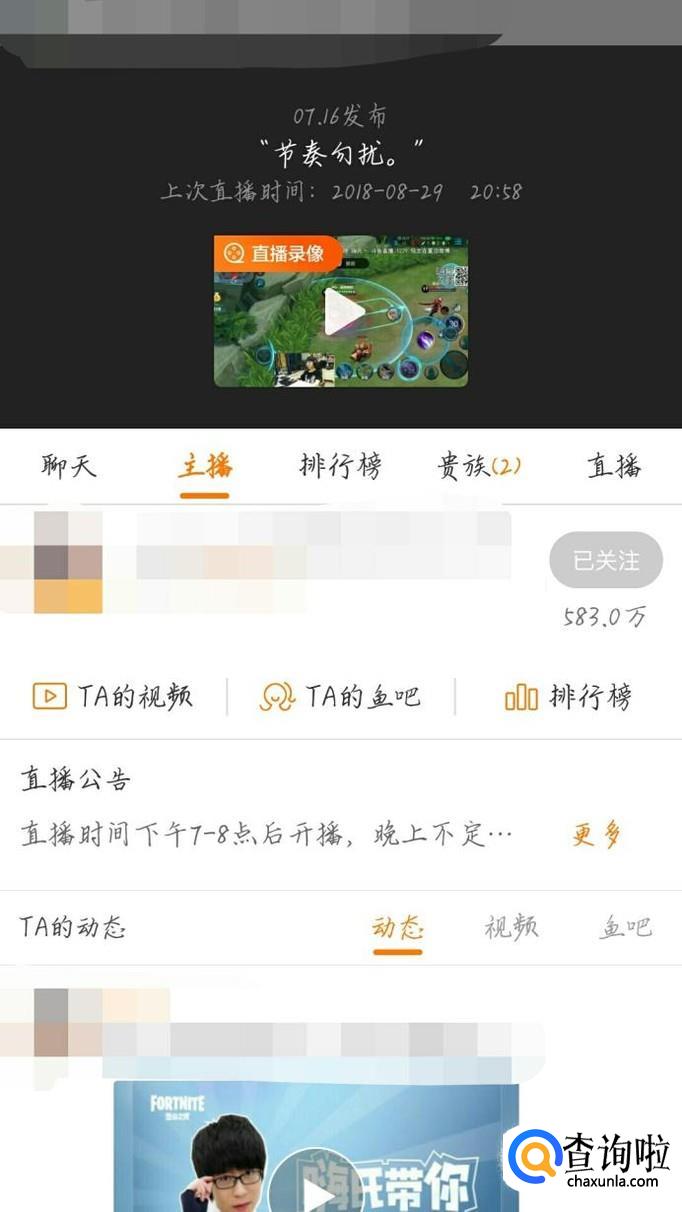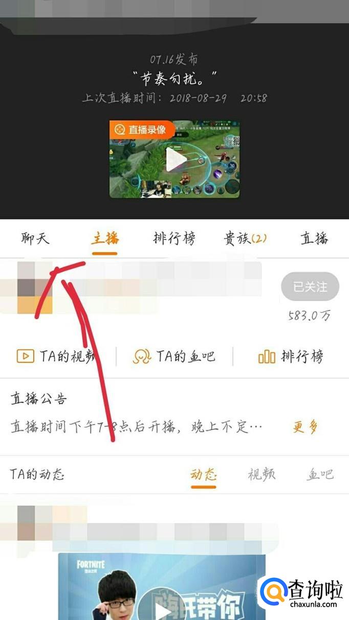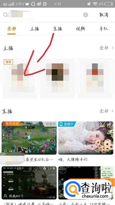 找到你感兴趣的主播,或者直接在搜索框中输入你想要关注的主播,如图1箭头所示。会出现一个新的界面,如图2所示。