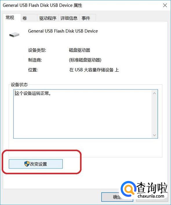 然后进入我们U盘的硬件属性页面后,我们再点击左下方的“改变设置”按钮并进入。