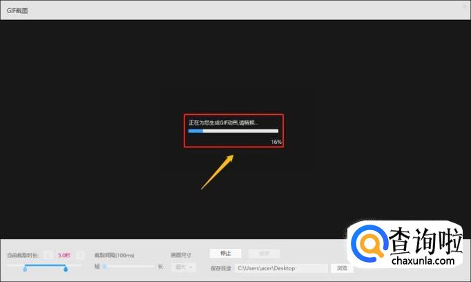 接着在截取界面,我们自行设置截取时长、截取间隔以及画面尺寸,截取完成以后点击"保存",这样一张新的GIF图片就制作完成了,格式也从刚才的视频格式变成了.GIF格式