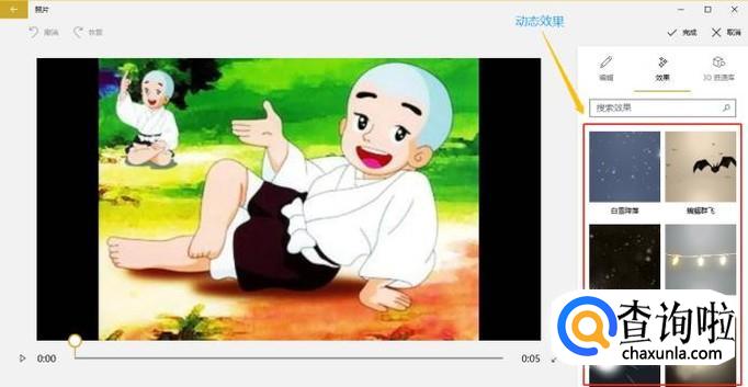 选择其中某一种效果以后,我们还可以将其拖动到合适的位置,添加好效果以后点击右上角的"完成";