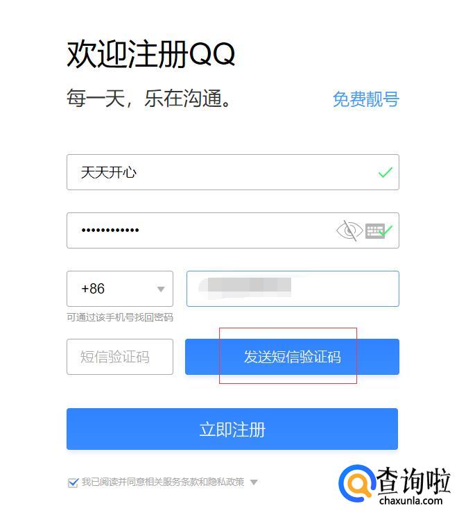 填写好各个信息后,发送短信验证码到手机,然后输入正确的验证码,再点击注册按钮即可。