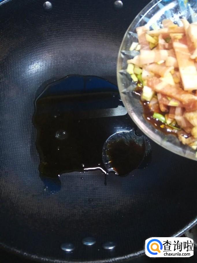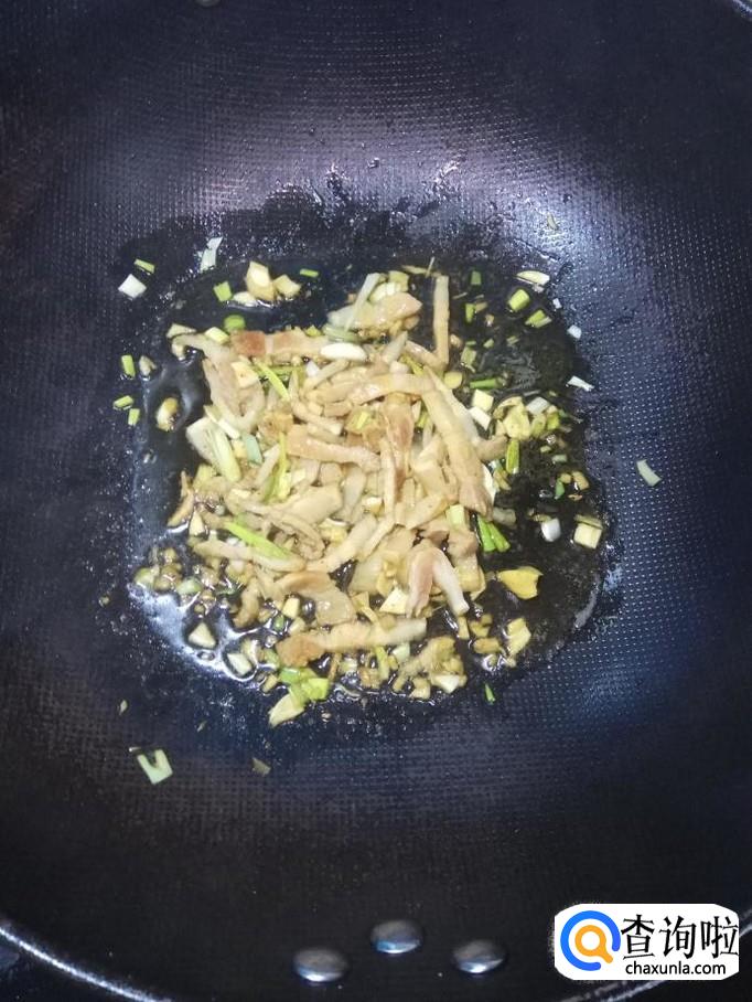 炒锅中放入适量油,油热后,将五花肉放入锅中炒香。