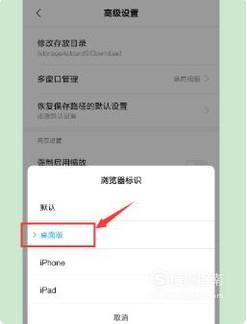 在弹出来的窗口中选择桌面版,其他浏览器选择类似的选项即可;