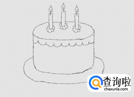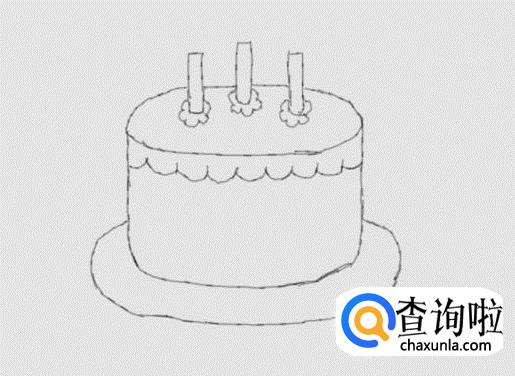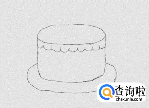 再在蛋糕胚的下面画出盛放蛋糕的盘子,如图所示: