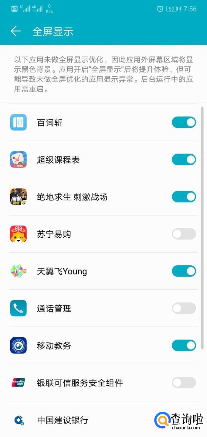 在该界面,我们可以打开相关应用,使其全屏显示,根据自己的需求打开关闭即可