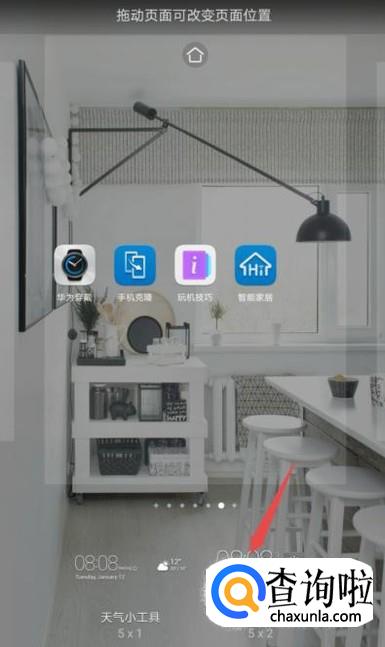 先长按手机桌面的空白处;