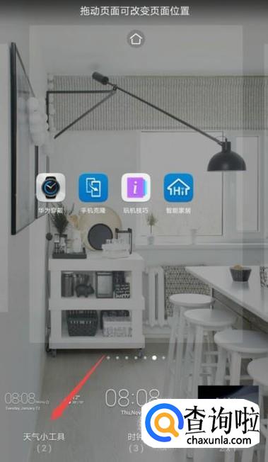 然后点击天气小工具;