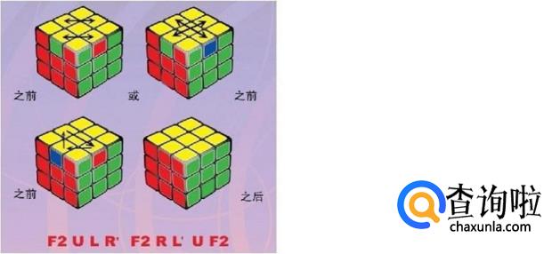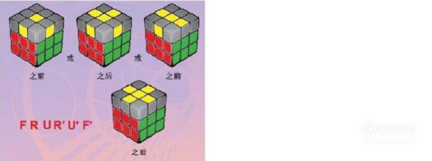 然后,将顶层(应该是黄色边块)调整向上,做出黄十字。若按照口诀转动一次,顶层认为出现黄十字,可重复按口诀旋转,直到出现黄十字为止。