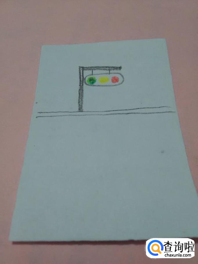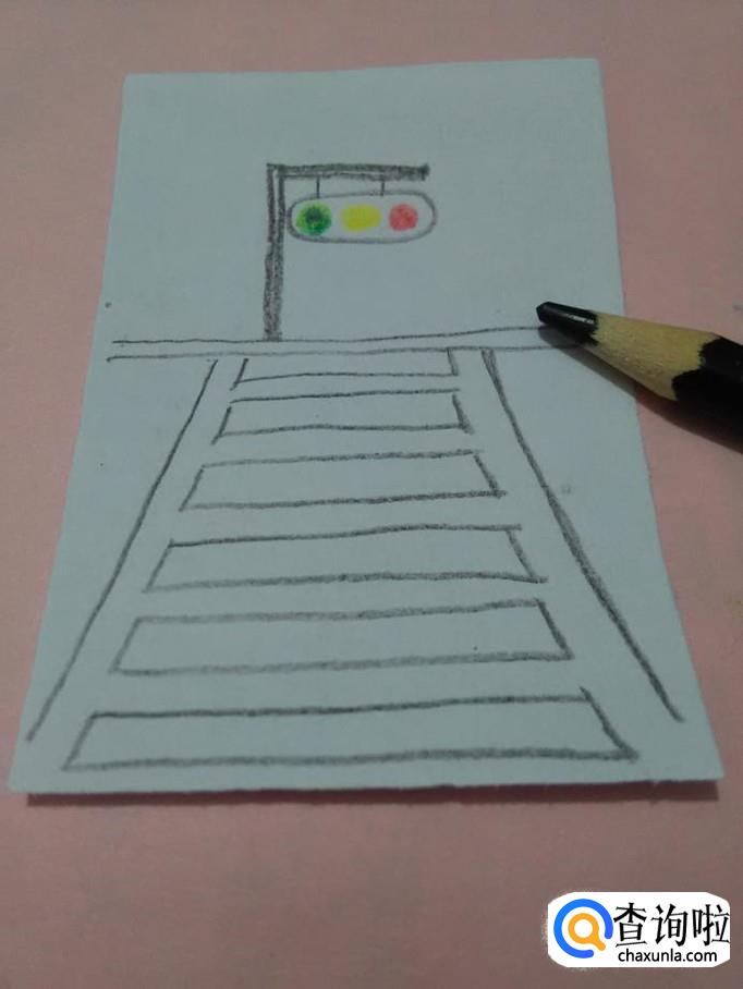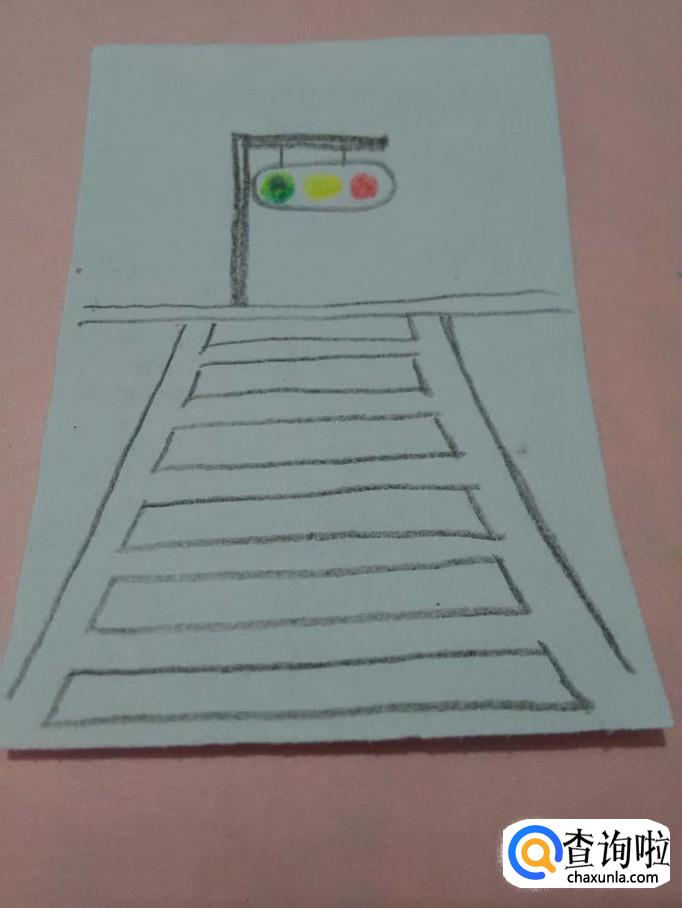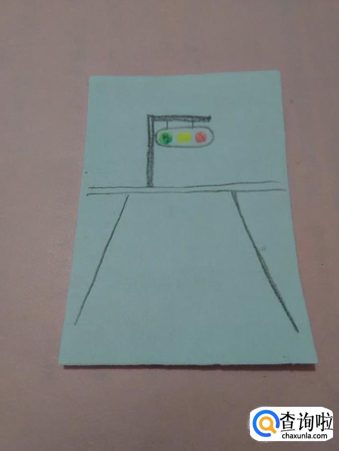 在红绿灯下面,画两条直线,表示便道。