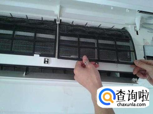 接下来我们就需要把空调机的外壳打开,然后把空调机里面的过滤网拿下来,空调最脏的位置就在过滤网。