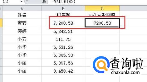 按enter键确定公式,如图所示,“7,000.58”就转换成了“7000.58”。
