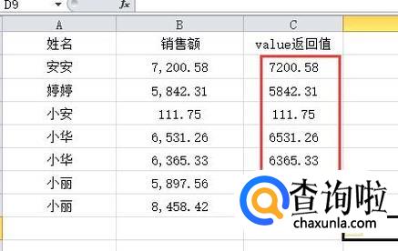 首先,打开excel表格,如图可以看到,销售额都是字符串数字,我们利用value将其转换成纯文本数字。