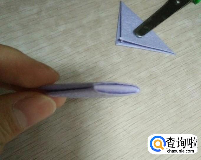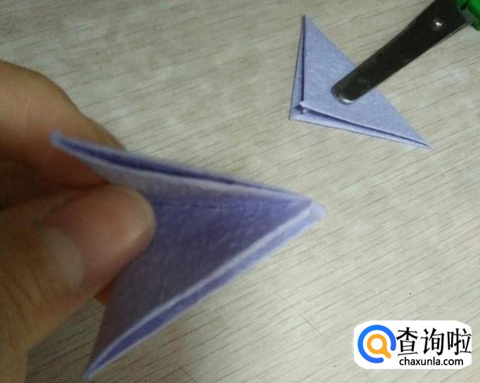 将左边的两个小三角折向右边的大三角。