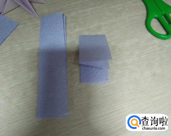 这个对纸的要求不高,折出来都好看。因为折这个需要的是长方形的纸,所以我把正方形的皱纹纸对折裁成两半。