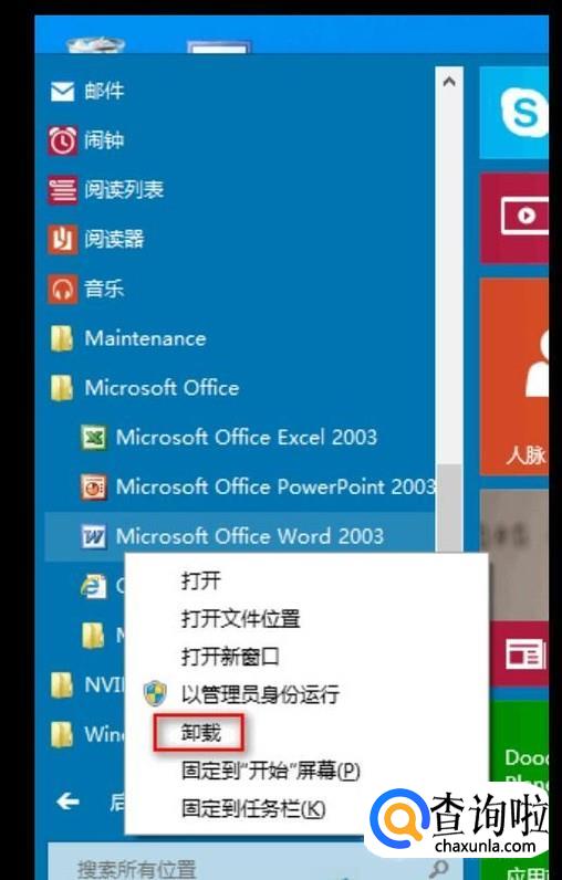 卸载后返回桌面,继续点击开始菜单,上下拖动,这是你就会发现应用已经被卸载了。