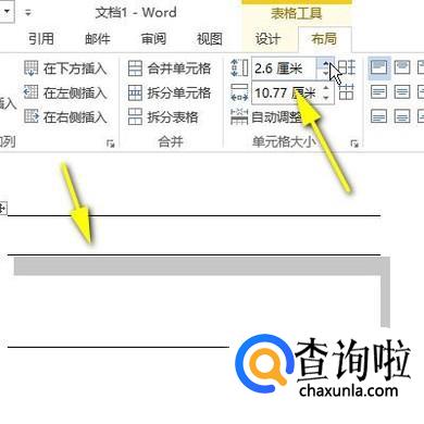 这一行保持在选中的状态;然后,鼠标移到布局下面的表格行高这里,设置行高。把这一行的行高数值增大。