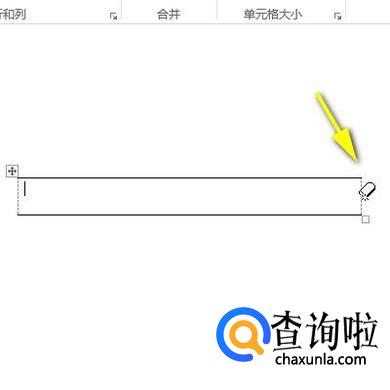 点开“布局”选项卡,点击“橡皮擦”按钮,调出此工具,把这个一列一行表格左右两侧的竖线擦除掉。