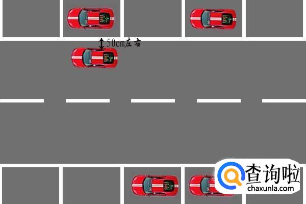 和停车位前的车辆保持约为0.5米左右的距离,停下。