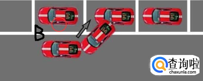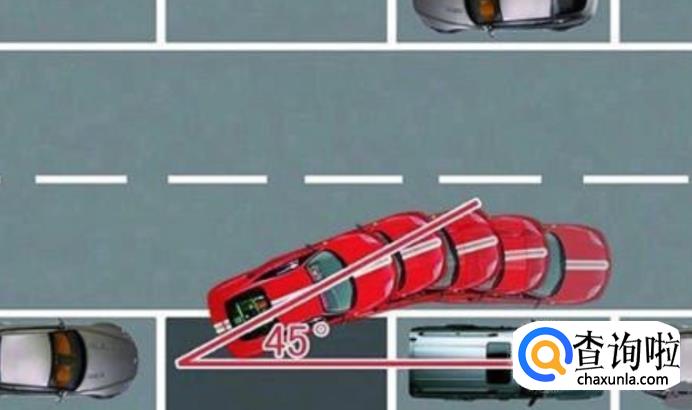 当我们倒进库里的车屁股和停车位呈45°的时候,我们向倒车方向的反方向,打满方向盘。
