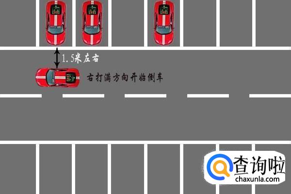 我们和车位旁边的旁边的汽车保持约为1.5米左右的距离,停下。