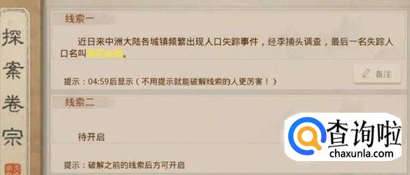 根据我们对游戏的熟悉度,我们需要去找到相关的线索人员询问桃花姑娘的下落,通过卷宗得知莲花姑娘是对周边最熟悉的人。莲花姑娘在昆仑山脚下的揽仙镇上,我们先找到她进行对话收集线索。找到莲花姑娘后,选择人口失踪案选项。