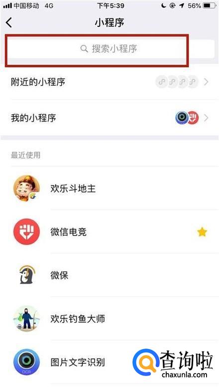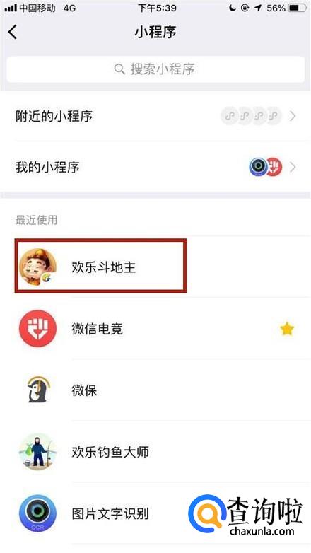 如果你的小程序里面没有欢乐斗地主,可以点击屏幕上方的搜索栏搜索欢乐斗地主就可以了。