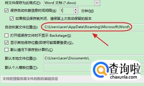 如果今后出现了忘记保存就关机的情况,那么也要按照刚才的流程找到此界面,然后我们在时间间隔的下方即可看到系统自动恢复文件的位置;