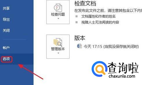 大家都知道,word是具有自动保存功能的,只不过如果没做更改的话,系统默认的自动保存时间为10分钟,如何查看呢?点击“文件”-“选项”,如下图;