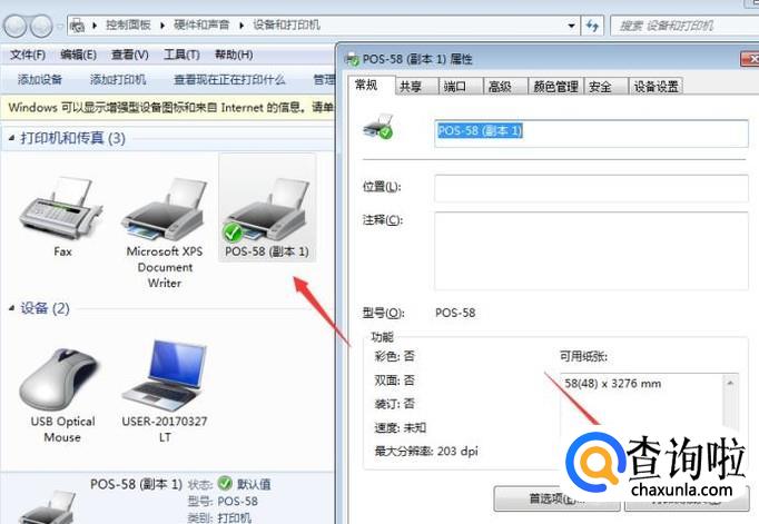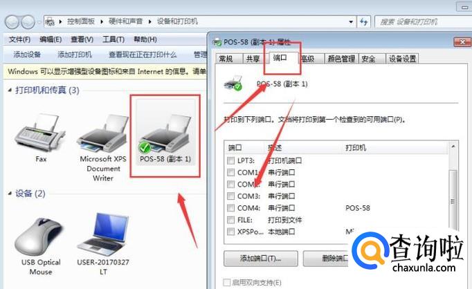 安装完毕后可以看到打印机列表已经有我们安装的打印机了。选中打印机右键选择打印机属性……端口,在端口里查看usb开头的端口有几个,选择端口并应用确定!(如果不是usb的打印机就不用选择了)
