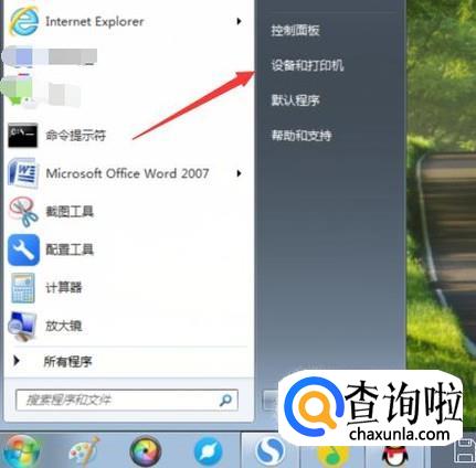 首先打开电脑的开始……设备和打印机(打印机和传真),如图所示。