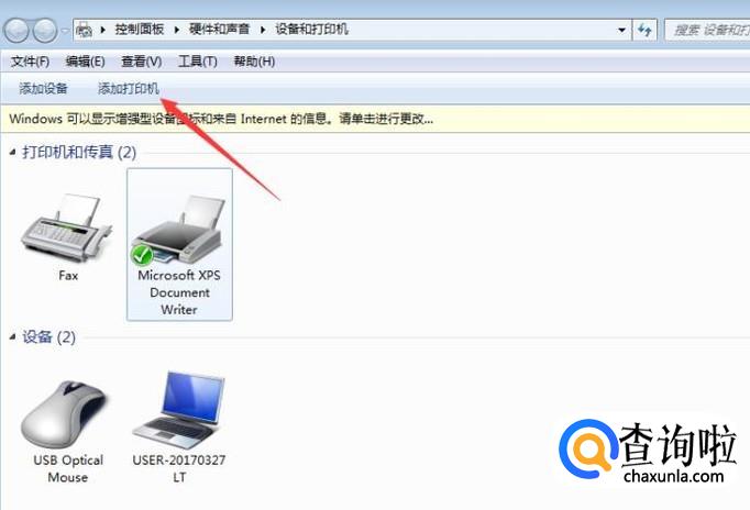 然后点击左上角的添加打印机,如下图所示。
