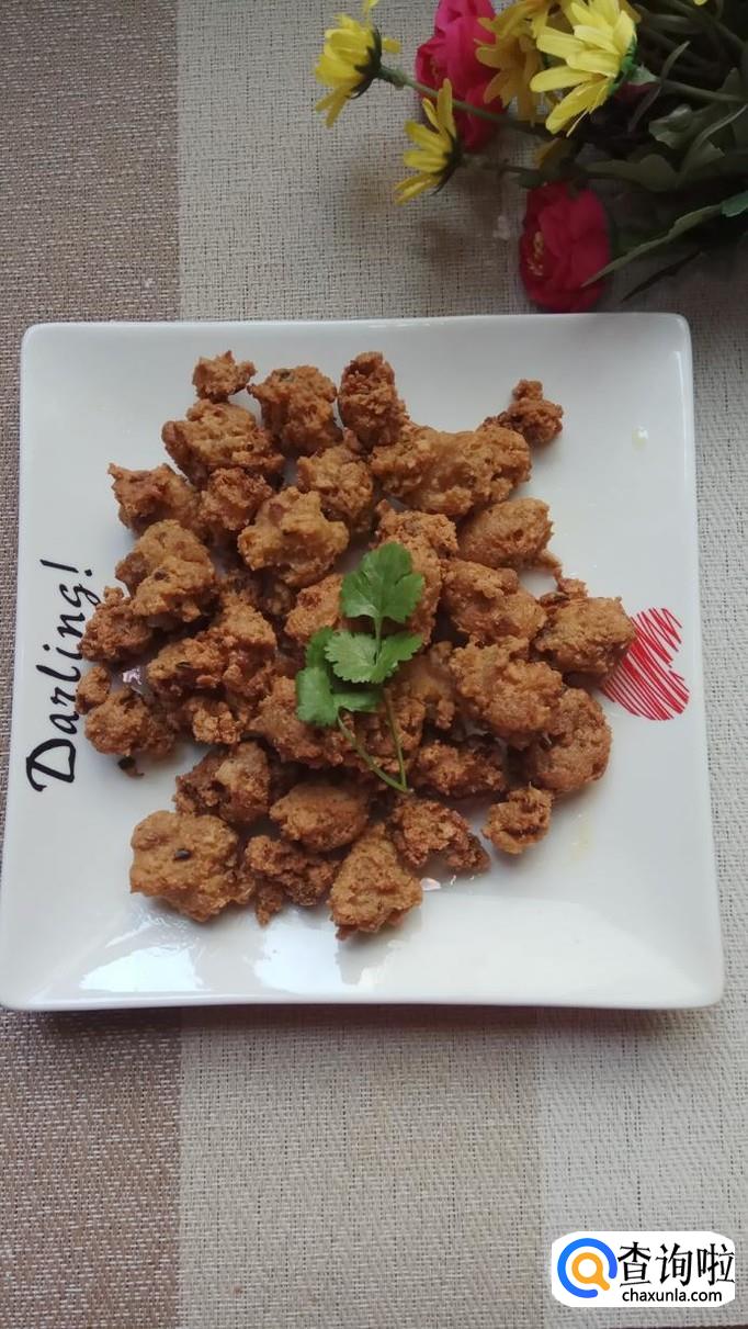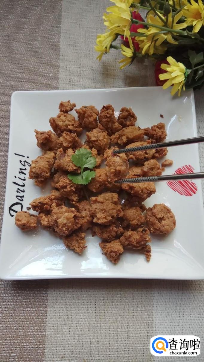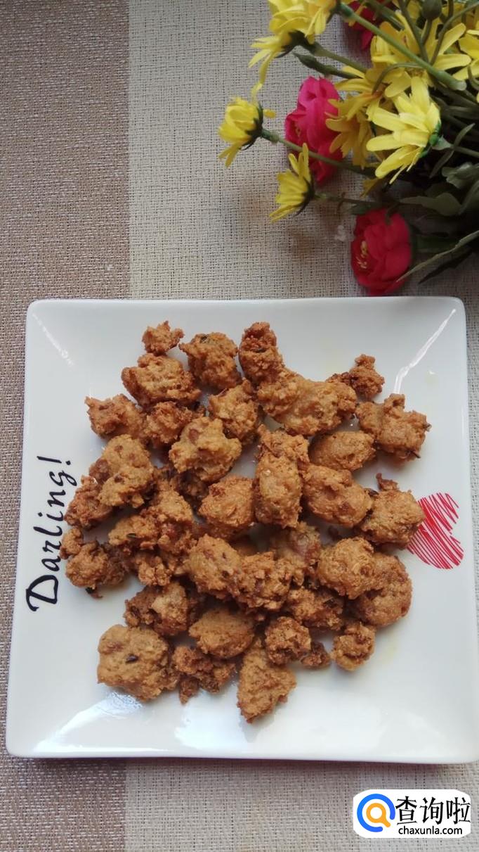 炸至金黄,捞出沥油,放入盘中,稍微晾一下就可以吃了。
