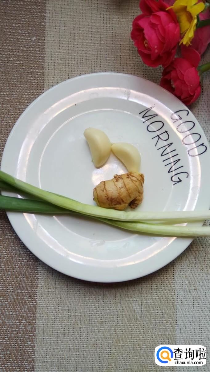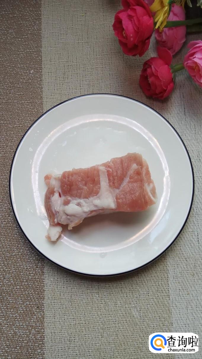 准备适量豆腐,这里选用的豆腐是老豆腐,这样炸出来的口感更好;准备适量五花肉洗净;再准备适量姜,小葱和大蒜。