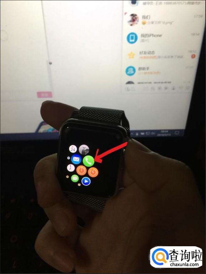 首先按下苹果手表右侧的按钮,来到主页,找到绿色电话样的图标,